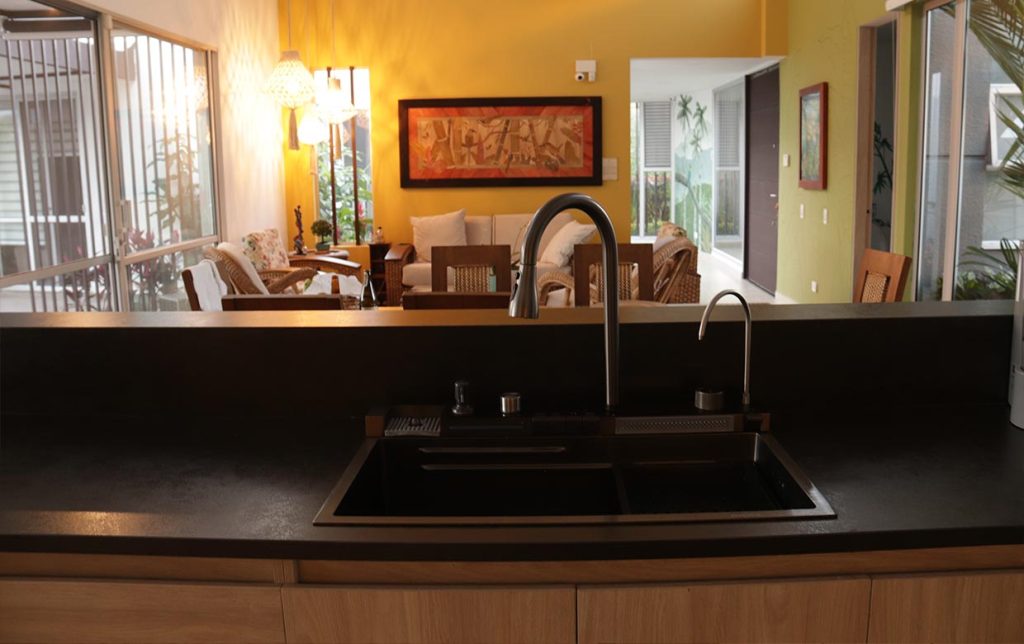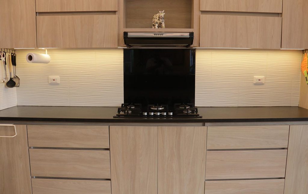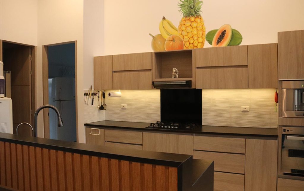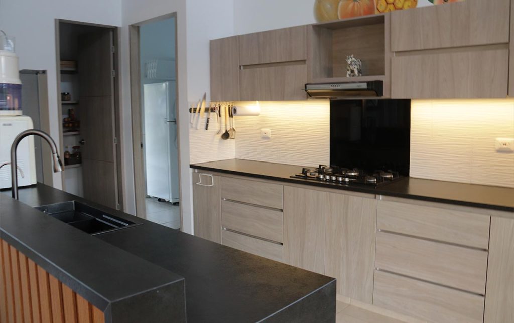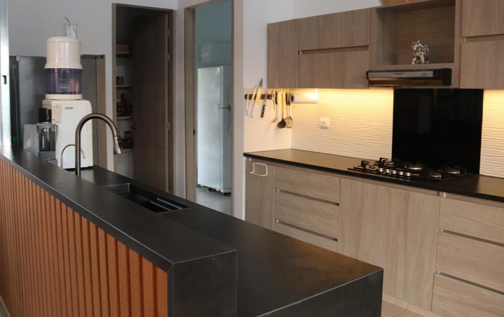 El sistema de apertura de puertas sin manijas hace parte de las tendencias actuales y otorga al espacio una especial sensación de pulcritud y minimalismo. El proceso de refrigerar, alistar y cocinar se puede realizar con practicidad gracias a la disposición inteligente de las áreas de trabajo. La Nevera, el lavaplatos y la estufa están ubicados pensando en su comodidad.